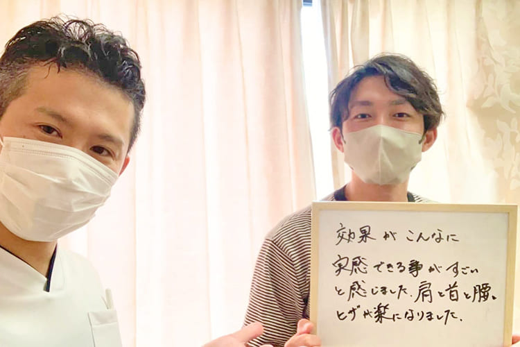 終わった後は、首が施術前より動くようになり、体全体が軽くスッキリしたような感覚になりました。施術前後の様子を写真で撮って、before afterも視覚的に知ることが出来たことも良かったです。